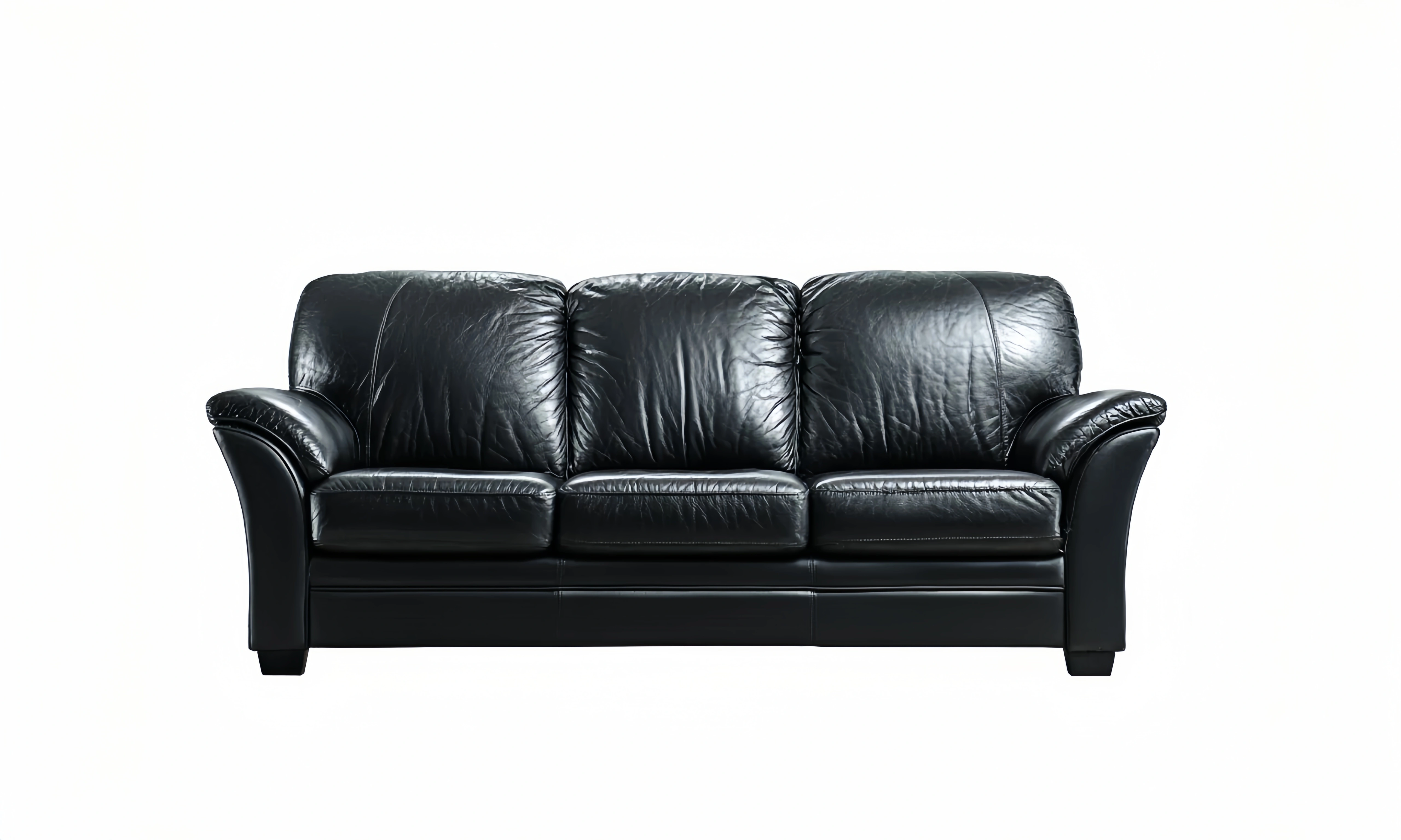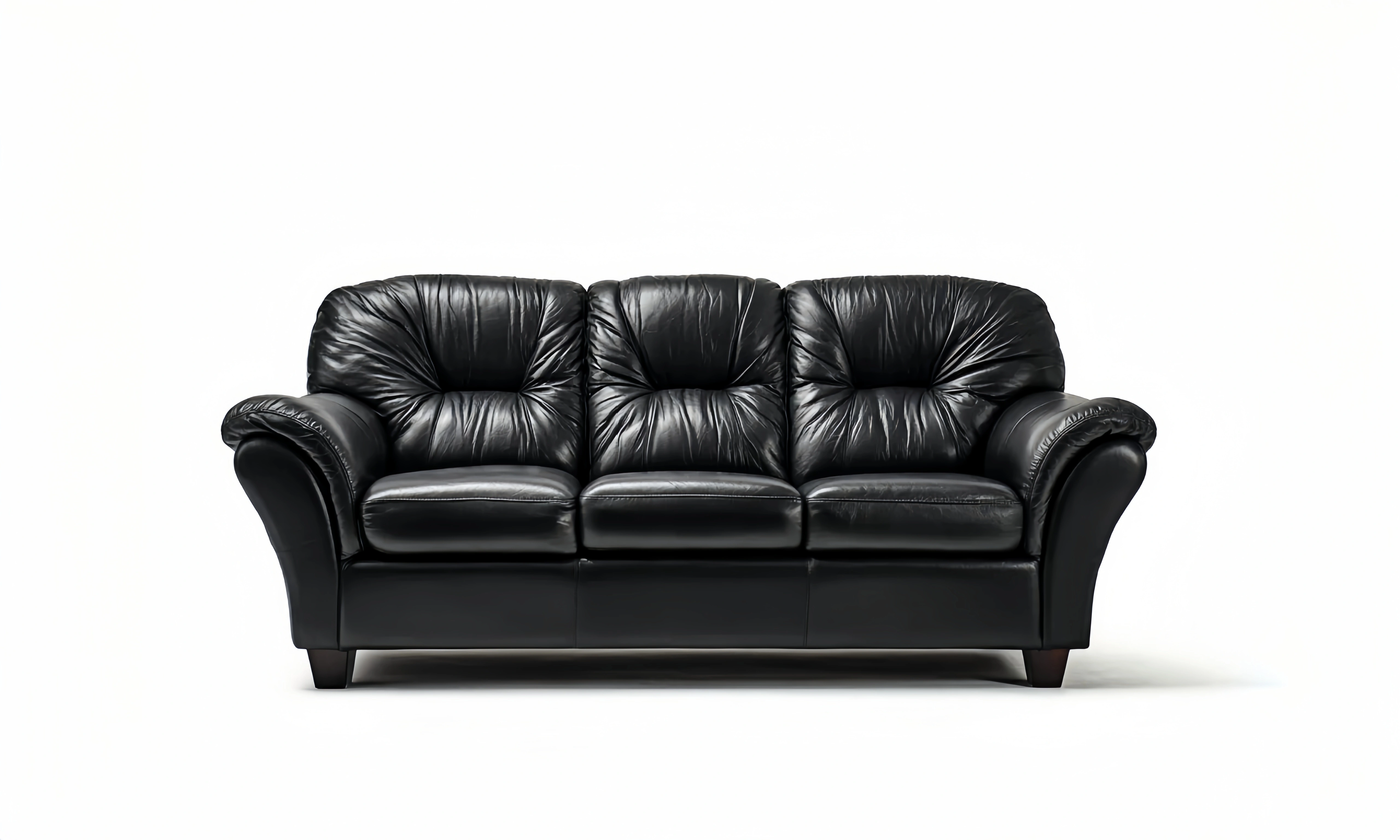 3 Seater Sofas Leather 3 Seater Sofa 210x95x90 cm - Black - Classic Comfort Design